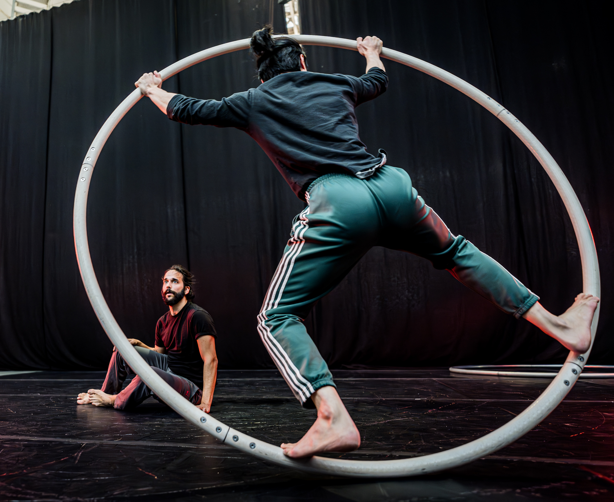 Plaza de El Invernadero Avenida Olimpica 1, Alcobendas, Madrid, SpainEste dúo de artistas tratan de reflexionar a través de la Rueda Cyr sobre sus características y experiencias compartidas como inmigrantes (Alvin es de Malasia, mientras que Alan es de…